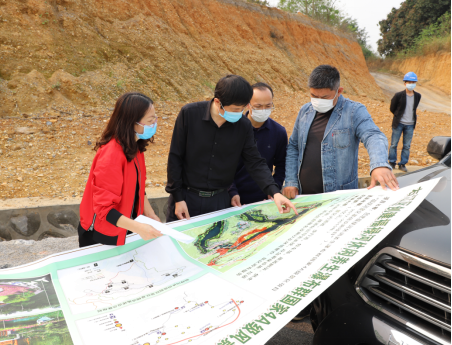 近日,市人民政府副市長莫前鋒率市直部門、右江區(qū)有關(guān)領(lǐng)導一行到我公司負責承建的市重大項目建設——福祿河休閑養(yǎng)生瀑布群國家4A級景區(qū)道路交通建設項目進行現(xiàn)場調(diào)研,了解項目推進中遇到的困難和問題。該項目是百色城區(qū)至福祿河濕地公園旅游扶貧二級公路建設項目公路工程,全長10.088 公里,是右江區(qū)的重點扶貧項目工程之一。