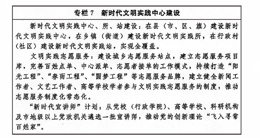 以實施文明創(chuàng)建工程為抓手,推動文明培育、文明實踐、文明創(chuàng)建不斷深入。創(chuàng)造性開展文明城市、文明村鎮(zhèn)、文明單位、文明家庭、文明校園和未成年人思想道德建設(shè)工作先進(jìn)等精神文明創(chuàng)建活動,拓展新時代文明實踐中心建設(shè)。弘揚科學(xué)精神,深入開展愛國衛(wèi)生運動,深化文明餐桌行動和“光盤行動”,倡導(dǎo)文明健康、綠色環(huán)保的生活方式。健全志愿服務(wù)體系,廣泛開展志愿服務(wù)關(guān)愛行動。加強(qiáng)網(wǎng)絡(luò)文明建設(shè)。