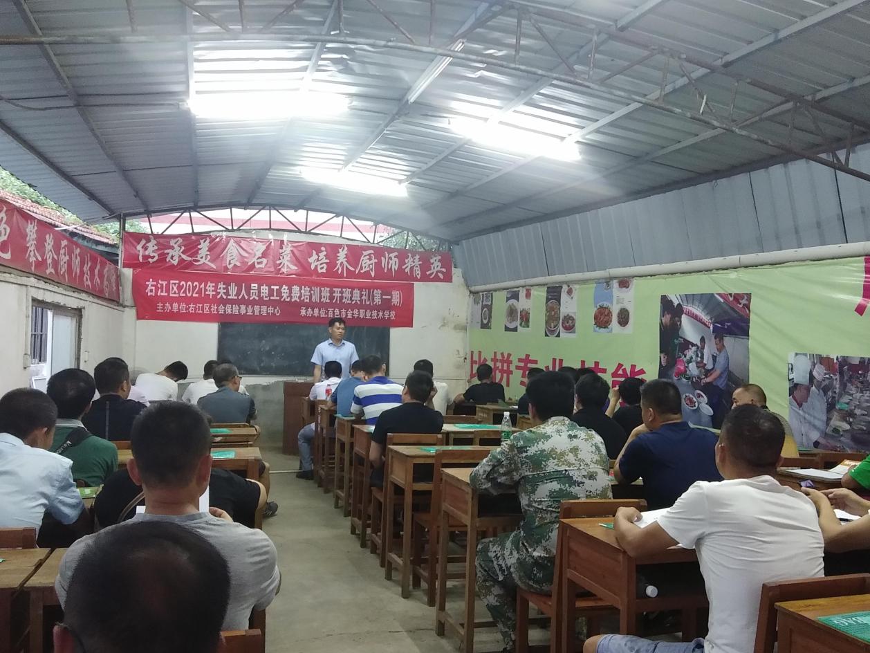 ????????近日,由右江區(qū)社會(huì)保險(xiǎn)事業(yè)管理中心主辦,廣西百色益嘉職業(yè)技能培訓(xùn)學(xué)校承辦的右江區(qū)2021年失業(yè)人員電工免費(fèi)培訓(xùn)班(第一期)順利開班,培訓(xùn)期十天,約30名失業(yè)人員參加培訓(xùn)。