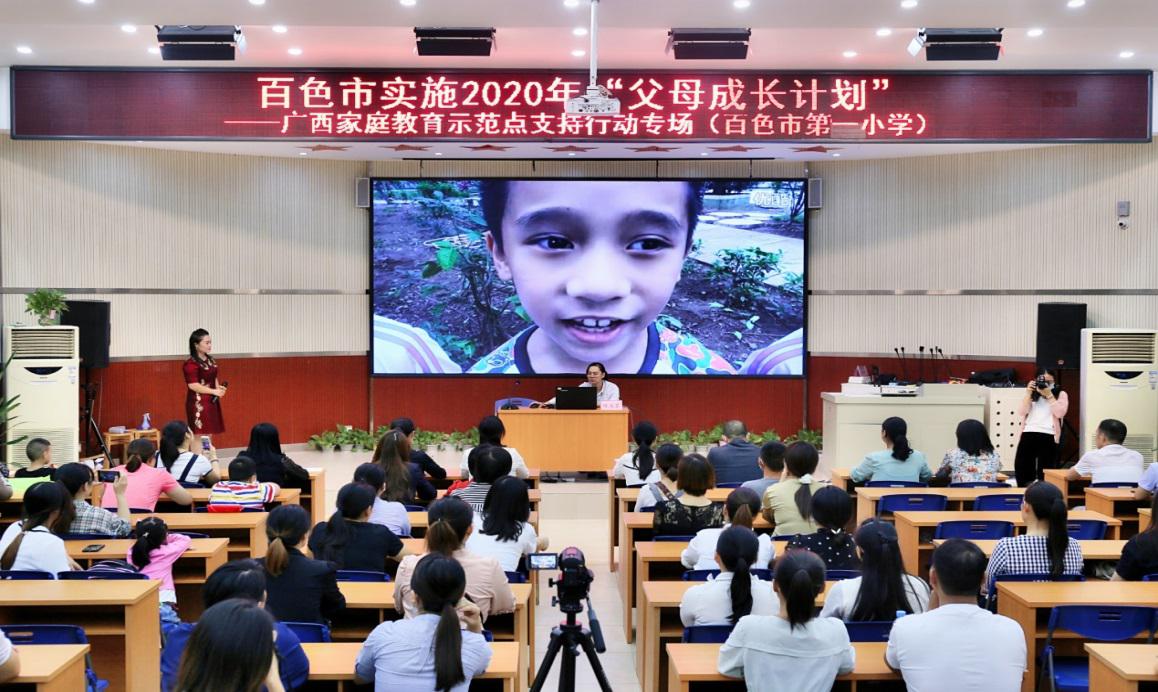 ????????為增強(qiáng)父母自覺學(xué)習(xí)運(yùn)用家庭教育科學(xué)知識的主動(dòng)性和積極性,9月24日,百色市婦聯(lián)主辦,由右江區(qū)婦聯(lián)、百色市第一小學(xué)和廣西益眾文化傳媒有限公司聯(lián)合承辦的百色市實(shí)施2020年“父母成長計(jì)劃”-廣西家庭教育示范點(diǎn)支持行動(dòng)專場講座活動(dòng)在百色市第一小學(xué)報(bào)告廳舉行,來自第一小學(xué)等學(xué)校學(xué)生家長約150人參加了講座。