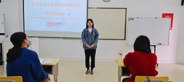 ??? 近日,為進(jìn)一步加強(qiáng)新教師的培訓(xùn)管理,提高新教師在理論學(xué)習(xí)、師德師風(fēng)建設(shè)、學(xué)生管理等方面的素質(zhì),盡快適應(yīng)公司的工作環(huán)境,廣西百色益眾教育投資有限公司結(jié)合公司教師職業(yè)特點(diǎn)和要求,組織開展新教師入職培訓(xùn)。參加培訓(xùn)的新員工是首批公司春季招聘30多名求職者中的佼佼者,來(lái)自北京師范大學(xué)、廣西師范大學(xué)等區(qū)內(nèi)外一流高等學(xué)府。本次培訓(xùn)主要圍繞企業(yè)文化、綜合能力、教師技能、實(shí)戰(zhàn)演練等方面開展。