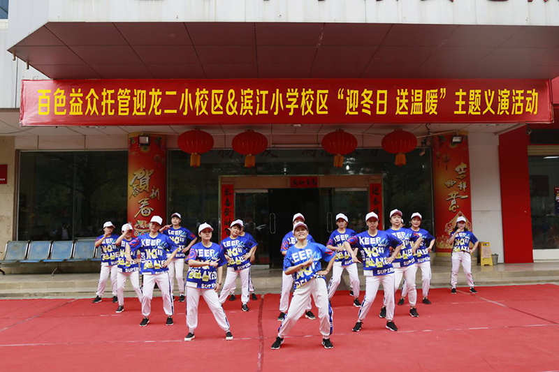 近日,為弘揚愛老、敬老、助老的中華民族傳統(tǒng)美德,百色益眾托管服務有限公司迎龍二小校區(qū)和濱江校區(qū)到百色市華宇樂安老院組織開展了主題為“迎冬日送溫暖”的義演活動。一曲曲悠揚婉轉的歌謠,一場場活力四射的舞姿,迎得了在場的老年人陣陣熱烈掌聲。最后一曲大合唱《感恩的心》把我們美好、吉祥的祝福和關愛送給老年人,他們的臉上露出了開心的笑容,活動現場洋溢著熱烈、祥和、幸福的氣氛。