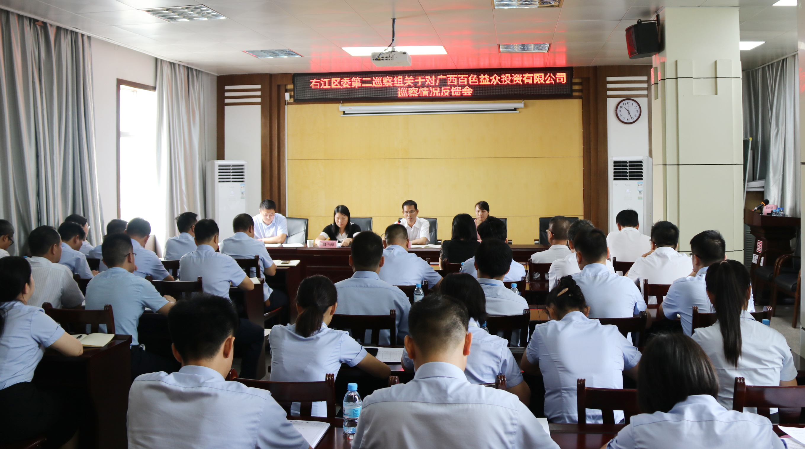 ???????9月17日上午,右江區(qū)委第二巡察組對廣西百色益眾投資有限公司巡察情況反饋會(huì)議在益眾公司辦公樓7樓會(huì)議室召開。區(qū)委第二巡察組組長黃梅艷在會(huì)上反饋巡察意見,益眾公司總經(jīng)理趙家臣主持會(huì)議并作表態(tài)發(fā)言。