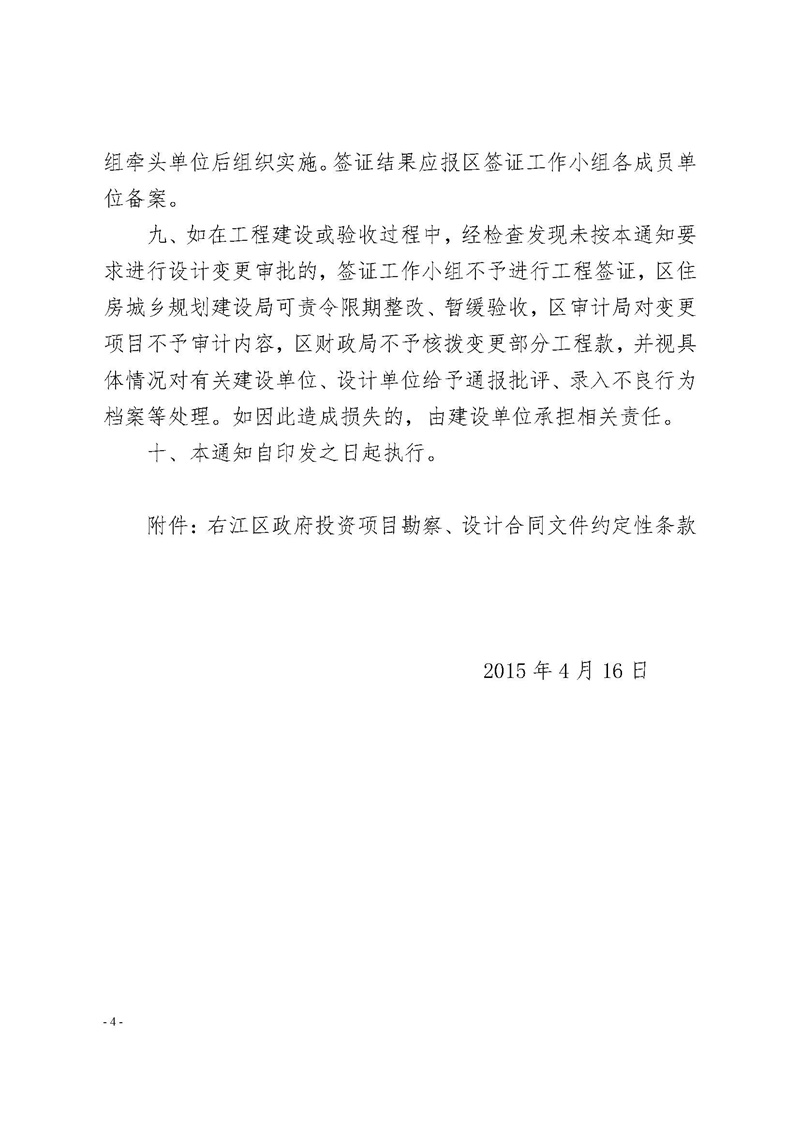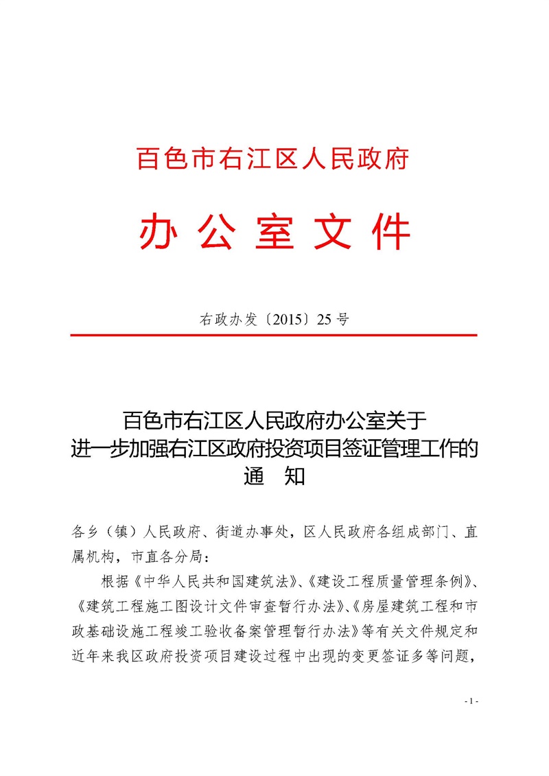 右政辦發(fā)[2015]25號 關(guān)于進(jìn)一步加強右江區(qū)政府投資項目簽證管理工作的通知