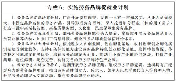 穩(wěn)定和擴大農(nóng)村勞動力外出就業(yè)規(guī)模。廣泛開展區(qū)域間勞務(wù)協(xié)作,健全勞務(wù)輸入集中區(qū)域與勞務(wù)輸出省份對接協(xié)調(diào)機制,加強勞動力跨區(qū)域精準(zhǔn)對接,發(fā)展勞務(wù)組織和經(jīng)紀(jì)人,有序組織輸出地農(nóng)村勞動力外出務(wù)工。培育一批有地域特色、行業(yè)特征、技能特點,帶動農(nóng)村勞動力就業(yè)效果好的勞務(wù)品牌。實施農(nóng)民工素質(zhì)提升工程,推進(jìn)新生代農(nóng)民工職業(yè)技能提升計劃。創(chuàng)建一批農(nóng)村勞動力轉(zhuǎn)移就業(yè)示范縣。