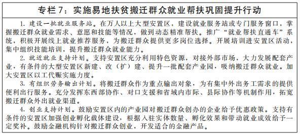 穩(wěn)定脫貧人口就業(yè)。健全脫貧人口、農(nóng)村低收入人口就業(yè)幫扶長效機制,保持脫貧人口就業(yè)領(lǐng)域的扶持政策、資金支持、幫扶力量總體穩(wěn)定。健全有組織勞務(wù)輸出工作機制,將脫貧人口作為優(yōu)先保障對象,穩(wěn)定外出務(wù)工規(guī)模。支持脫貧地區(qū)大力發(fā)展當(dāng)?shù)貎?yōu)勢特色產(chǎn)業(yè),繼續(xù)發(fā)揮就業(yè)幫扶車間、社區(qū)工廠、衛(wèi)星工廠等就業(yè)載體作用,為脫貧人口創(chuàng)造就地就近就業(yè)機會。聚焦國家鄉(xiāng)村振興重點幫扶縣、易地扶貧搬遷安置區(qū),積極引進(jìn)適合當(dāng)?shù)厝罕娋蜆I(yè)需求的勞動密集型、生態(tài)友好型企業(yè)(項目),增加本地就業(yè)崗位,組織專項就業(yè)服務(wù)活動實施集中幫扶。