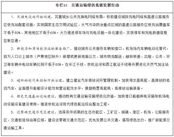 實(shí)施交通運(yùn)輸綠色低碳轉(zhuǎn)型行動(dòng)。研究制定交通運(yùn)輸領(lǐng)域碳排放統(tǒng)計(jì)方法和核算規(guī)則,加強(qiáng)碳排放基礎(chǔ)統(tǒng)計(jì)核算,建立交通運(yùn)輸碳排放監(jiān)測平臺(tái),推動(dòng)近零碳交通示范區(qū)建設(shè)。建立綠色低碳交通激勵(lì)約束機(jī)制,分類完善通行管理、停車管理等措施。