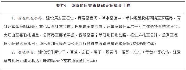 服務(wù)沿邊城鎮(zhèn)體系建設(shè),以公路、機(jī)場為重點(diǎn),大力改善邊境地區(qū)交通出行條件,提升邊境城鎮(zhèn)人口集聚能力。統(tǒng)籌推進(jìn)邊境地區(qū)國省干線公路、農(nóng)村公路等建設(shè),全面完善國道干線主骨架,推進(jìn)沿邊公路并行線建設(shè)和低等級(jí)公路提質(zhì)改造,加快抵邊公路建設(shè),盡快形成層次清晰、結(jié)構(gòu)合理的沿邊公路網(wǎng)。穩(wěn)步推進(jìn)邊境地區(qū)機(jī)場建設(shè),構(gòu)建多層級(jí)航空網(wǎng),擴(kuò)大航空運(yùn)輸服務(wù)覆蓋面。補(bǔ)強(qiáng)同江、二連浩特、阿拉山口、霍爾果斯、瑞麗、磨憨等口岸后方鐵路通道能力。加強(qiáng)抵邊自然村郵政設(shè)施建設(shè),實(shí)現(xiàn)郵政服務(wù)普遍覆蓋。